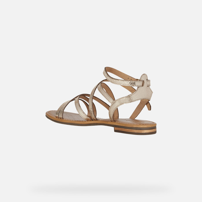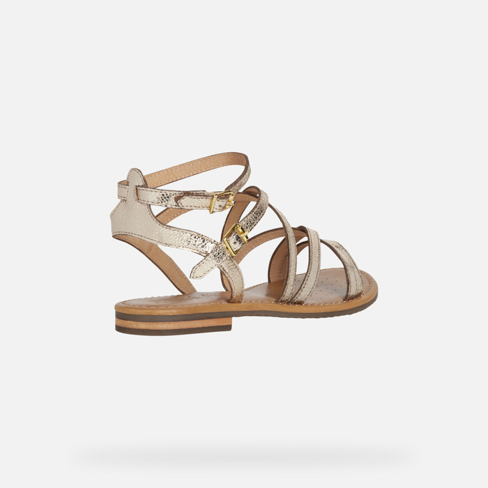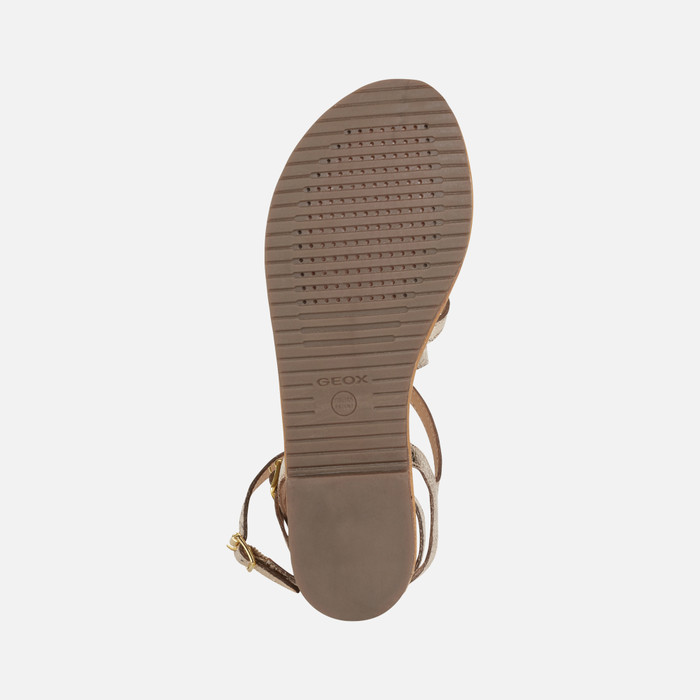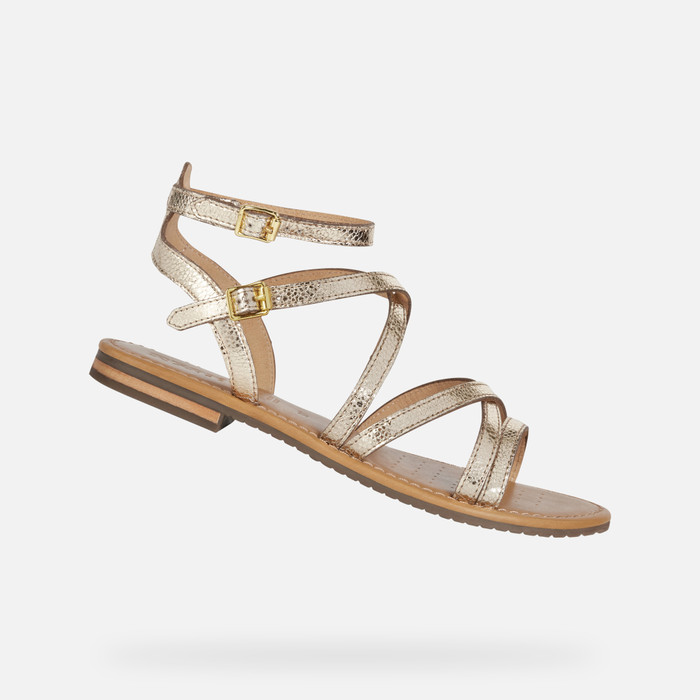 Women’s flat sandal with slender straps and an ankle fastening.Comfortable and fashionable, Sozy is a contemporary-looking sandal which offers stylishness and well-being at the same time. Crafted from gold-tone metallic leather and set on a leather sole, it will instantly lift laid-back summer outfits with its gleaming gilded aesthetic.